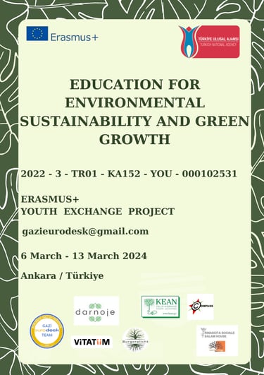 K152 - gençlik değişim projeleri altında gerçekleştirdiğimiz, 6 Mart 2024 ve 13 Mart 2024 tarihleri arasında da toplantısı yapılan bu projemizde 6 farklı ülkeden olan partnerlerimizle Ankara’da buluşarak günümüzün çevre sorunlarına, bu sorunların dünya üzerinde ve kendi ülkelerimiz üzerinde nasıl bir etkiye neden olduğuna değindik. Türkiye, İtalya, Estonya, Belçika, Macaristan ve Litvanya’dan katılan partnerlerimiz çevresel sorunları analiz ederek ülkelerimizin ve bireyler olarak bizim neler yaptığımız, neler yapabileceğimiz ve gelecekte neler olacağı üzerine fikir alışverişlerinde bulunduk.
