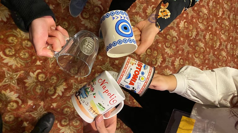 Çevre ve sürdürülebilirliğin ana temamız olduğu bu projemizde tek kullanımlık bardakların doğaya verdiği zararı en aza indirmek istedik. Bunun için katılımcıların kendi ülkelerini tanıtan bardaklarla kura çekerek hem sürdürülebilirlik sağladık hem de farklı ülkelerden anılarımız oldu.